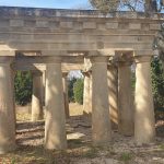 Mise en place de blocs de pierre de Vers pour servir d’assise aux colonnes.