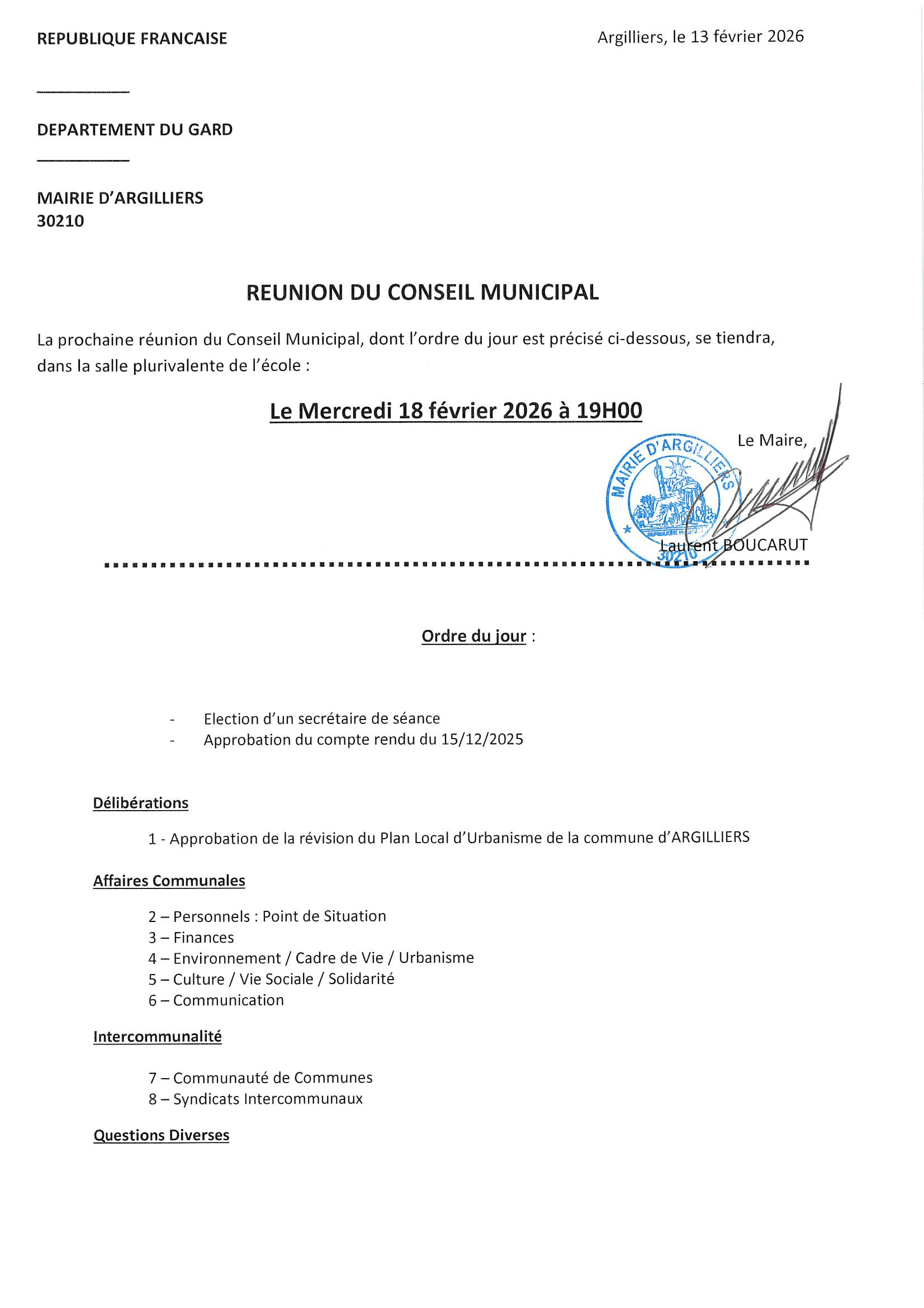 Comptes Rendus des Conseils Municipaux de 2026 CONSEIL MUNICIPAL DU 12 MARS 2026 Odj CM 12.03.2026 CONSEIL MUNICIPAL DU 18 FÉVRIER 2026 2026-02-18 CONSEIL MUNICIPAL